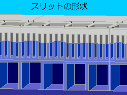 このケーソンは縦に二重構造になっていて、下のケーソンはスリットではなく、上のケーソンの吊り上げ金具の付いているところのみ底まで柱があると言う「噂」です。箱の内側の底はところどころ穴が開いていて、そういうところに落としてしまうと下のケーソン内まで落ちていきます。