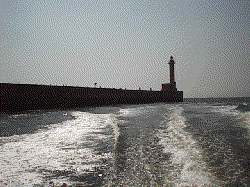 | 中央から見た南側白灯方向 | 南側から見た北側先端赤灯方向 |  | |