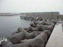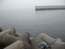 クランクしている波止のうち東西に延びる波止の南側がハネのメインの釣り場です。内(北)側や他の南北の波止でも釣れますが、なぜか極端に型が小さくなります。この東西の波止の南側にはテトラが入っています。切れているところもありますが、テトラが崩れているだけです。全体的に2〜4ヒロの深さがありますが、テトラの崩れ具合や藻の着き具合で浮子を流すと1mでも引っかかる場合もあり、通って、点在するポイントを見つけるしか無いでしょう。もちろんハネだけでなく、チヌも釣れ、夏や秋にはサビキやタチウオ狙いの人たちで波止は溢れ返ります。