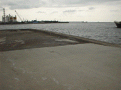 北側半分はオーバーハングしていて、潮によってオーバーハングが見え隠れする。このオーバーハングの中にイガイを入れられなければ、落とし込みでチヌを釣るのは難しい。新波止と同様の型が期待でき、人があまりいない分私は良く行く。