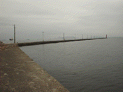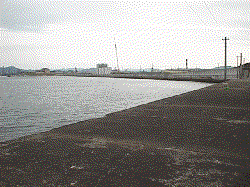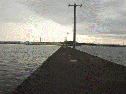 飾磨のメインの波止の一つで、落とし込みに限らず渡る人は結構多い。地続きで、ドラムのテトラやちょっと遠いが夢前側川筋にも行ける。新波止に比べて、平均した型は落ちるが釣れるときにはチヌが爆釣する。'96年のリョービ落とし込み全国大会決勝は中波止であった。投げでカレイや舌平目も上がる。海面からの高さは低い。