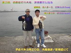 1997年3月16日、午前6時から正午まで、森下渡船を利用して南方氏と神戸・和田防波堤に行きました。今回も残念ながらカメラを忘れたので、写真は次回です。