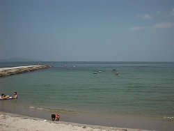 2日の昼間はズッと海水浴で、夕方から浜に突き出た突堤の先端から子供と投げ釣りをしました。釣果は25cmを筆頭に7匹のキスと、20cmのヒラメ、15cmほどのチャリコ3匹、フグ多数、サヨリ1匹(釣ったのではなく子供が手掴みで捕まえた!)でした。結構良型のキスが釣れるのにはビックリしました。浜の先の方に捨て石が入っていて(写真で海がざわついているところ)、そのあたりでおっちゃんが岩牡蛎を採っていました。子供がもらって食べたところ「美味しかった」と・・・。で大山ロイヤルホテルの玄関先等々でも売っていました。この季節(Rの付かない月)、貝毒は大丈夫なのでしょうか?