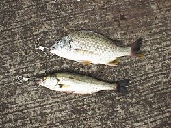 私の2年ぶりの32.0cmキビレと31.5cmセイゴ南方氏の釣果  | | | |