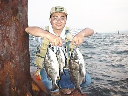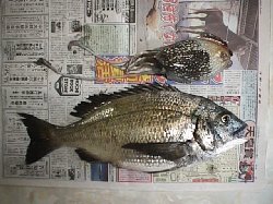 | 今日は久しぶりに啓太と。啓太は2回目の落とし込みも、起きられずやはり出遅れ。ただ、今日の6防はストリンガーはぜんぜん掛かっていません。6防での教えながらの3時間は、2人ともまったくアタリすらなく時間切れでした。何にしても、何で一本もストリンガーが掛かっていないのか? 不思議なことに誰も釣れている様子がありませんでした。 | そして今日も夕方から神戸港へ。5時に行っても2時間半も落とせるので、この季節は大好きです。が、行ってすぐに「きいたら引っかかりが外れたようなので緩めると、思いっきり引き込み、でタイミング合わずのスバリ」。「いる」と思ったのにその後アタリが無い、無い、無い。とうとう「久しぶりのボウズ日か?」と諦めかけた17時半過ぎ、やっと目印が見える状況。一瞬目印を見失って思わず合わせると24cmがひらひら浮いてきたのでした。とりあえずボウズは免れ・・・誰かに言われるだろうナァ、きっと、「ババタレはチヌじゃない」って。^_^; その後のコスリはエサ取りが湧いているようでまったくダメでした。でも、メバルは21〜26cmを6つも上げました。今日は全体的にチヌは悪かったようですが、昨日は良かったのになんで今日はダメなんだろう??? ![]() |