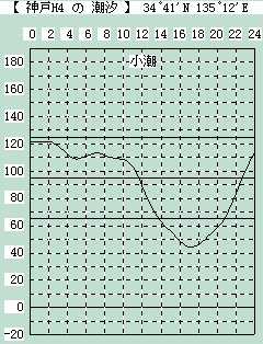 (旧04/09) PM:晴/微風。小潮 | 満潮:03:46/131cm,14:09/89cm | 日出04:51 | 正中11:56 | 日入19:01 | 干潮:11:11/86cm,20:22/59cm | 月出12:32 | 月入01:05 | 月齢7.6 | | |||