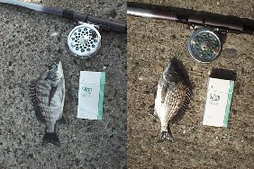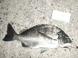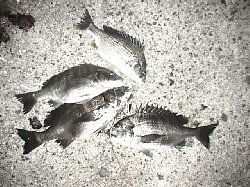 | 今日はどうしても行かないといけない用事があり休みをいただきました。朝から夜9時まで2時間置きに会社に電話を入れて、結局「何も無い」で終わってしまいましたが。 で、用事の前、朝の3時から、やはりお休みだった江頭君と行きました。暗い内はコスリ、小さいガシラか、アタリはあるのになかなか乗らない。結局20cmほどのガシラ1つだけ。風がかなり出てきて、江頭君は桟橋へ。私は灯台周りで一度スバリ。今日は低気圧の影響もあってか、かなり潮が高くて、カニやらフナムシがいっぱい波止の上に。で、フナムシを何匹か捕まえて落とし込むと、桟橋で33cmの元気なチヌを取りました。33cmでもかなり突っ込んでくれたので大いに満足しました。他には外で知らない人が30cm足らずを1つ取ったのと、高い方の桟橋で私が一度乗ってすぐハリ外れでした。 |